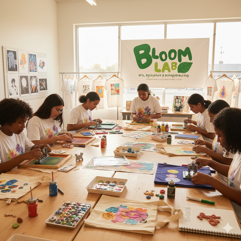 Where Creativity Meets the Soil and Business Logic. Bloom Lab is a youth-powered program designed for 6th–12th graders to cultivate creativity, confidence, and community leadership. Through hands-on learning in Arts, Agriculture, and Entrepreneurship, students don’t just learn, they build.